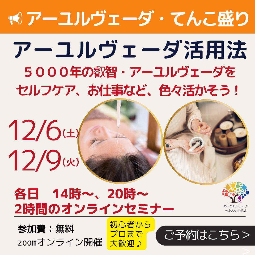 | 主 催 | アーユルヴェーダヘルスケア学院 一般社団法人日本シロダーラ協会 |